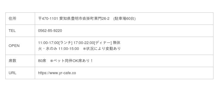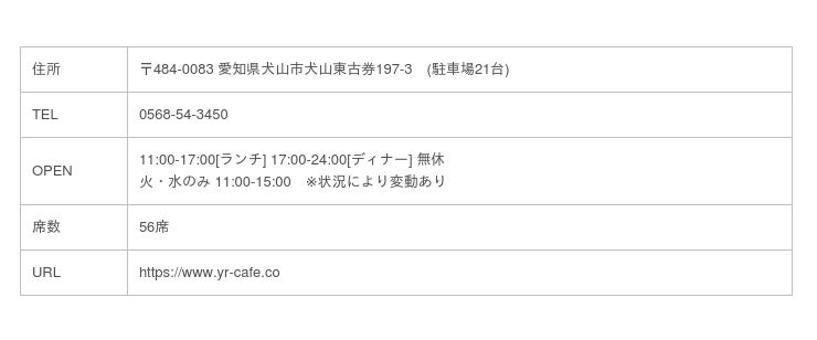 2、YR CAFE by恵比寿楽園テーブル[愛知県犬山市]