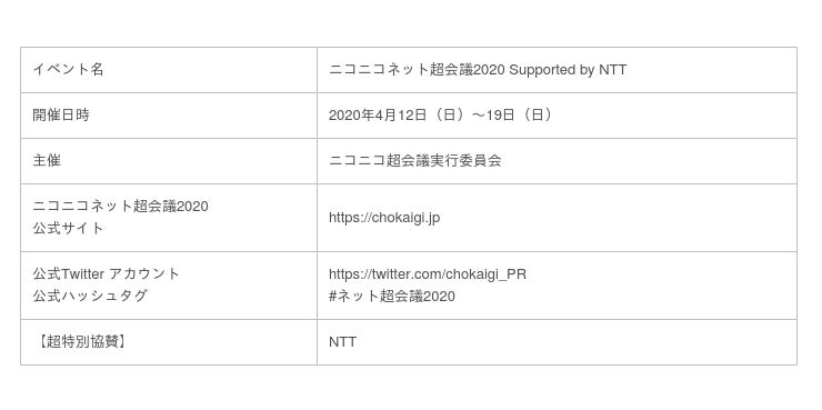 「ニコニコネット超会議2020」開催概要