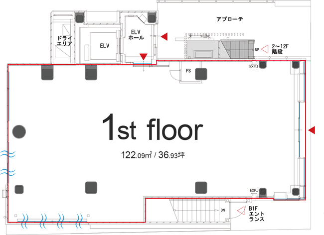 1F : 122.09平米 / 36.93坪(飲食店・医療サービス・ミニスーパーなど)