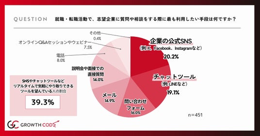 最後に、志望企業に質問や相談をする際に最も利用したい手段について尋ねた結果、求職者のコミュニケーションの志向性が明らかになりました。