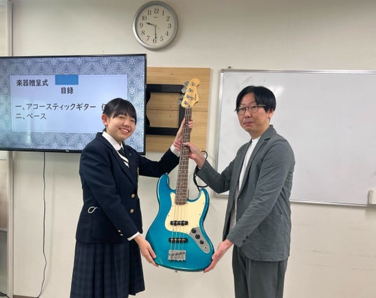 今回の軽音楽部への楽器寄贈は学生の音楽活動を応援したいという気持ちの表れです。学生の皆様には今後の部活動を通して、楽しく音楽活動をされることを期待しております。