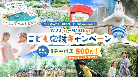 特定非営利活動法人ディーセントワーク・ラボ(本社:東京都大田区、代表理事:中尾文香)は、「機会(チャンス)が同じ(公平)であること」が何よりも重要であるとの思いから、株式会社ムーミン物語が運営する「ムーミンバレーパーク」にて7 月 27 日(土)~9 月 30 日(月)の期間実施される、「こども応援キャンペーン」を企画しました。キャンペーン期間中、高校生以下の方は誰でも 1 デーパスを 500 円でお楽しみいただけます。ぜひこの機会に、思い出に残る楽しい時間をムーミンバレーパークでお過ごしください。