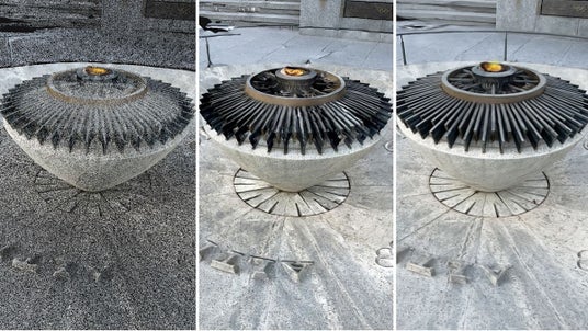 PIX4Dcloudで生成された3Dデータの比較:左から、点群、3Dメッシュ、ガウス スプラッティング