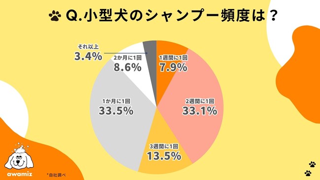 短毛犬と長毛犬においても、1か月に1回のシャンプーが一般的なようですが、長毛犬は被毛の特性から、より頻繁なケアが必要とされていることがアンケート結果に表れてますね。