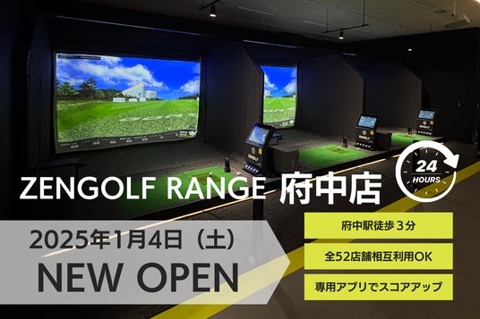 ツリーベル株式会社(本社:東京都目黒区、代表取締役社長:森田 晋平)は、インドアゴルフスクール・練習場のグループ52店舗目となる「ZENGOLF RANGE 府中店」を2025年月1日4日にオープンします。