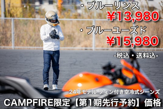 24年フィン付き空冷式ジーンズ 走行風取り込み150%up CAMPFIRE第1期先行予約販売