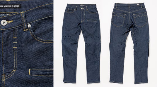 見た目は通常のジーンズにしか見えないオートバイ専用設計フィン付き空冷式ジーンズ