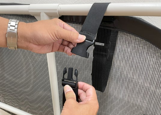 ・材質:ネット(ポリエステル+PVC)、ベルト(ポリエチレン)、金具(ポリアセタール樹脂)