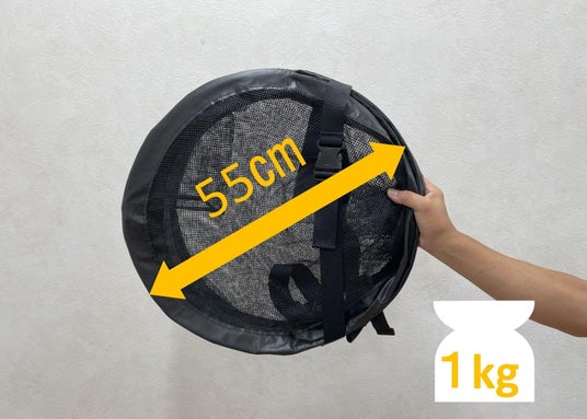 重量わずか1kg。テントのように折り畳める設計で運搬・収納が容易。
