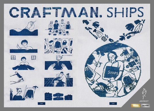 ADFESTは1998年に創設された、アジア太平洋地域を代表する国際的なクリエイティブ・フェスティバルです。広告、マーケティング、デジタル、プロダクションなど、幅広い分野における優れたクリエイティブを称える、世界的に権威のあるアワードとして知られています。今年度は『Human+』をテーマに、AIなどテクノロジーが進化する世の中で、人間の創造性が新たな価値を生み出せるかが問われる中、本キャンペーンでは、「最高の普通」を掲げ歩んできたSHIPSの50年間の揺るぎない姿勢を「青いまま進む。」というステートメントに込め、デジタル加工を一切排除し、素材には「船の帆」にも使われるキャンバス生地や、ブランドを象徴する青い糸を使用し、洋服作りの原点である「刺繍」により、圧倒的なクラフトマンシップで視覚化。