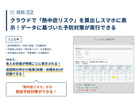 ■ 「5K 熱中症・体調管理クラウドサービス」の特長