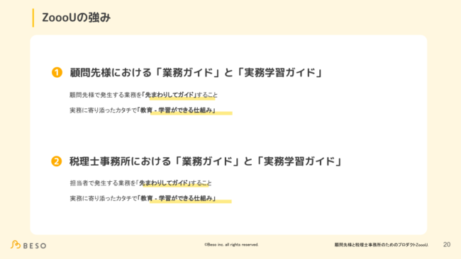 税理士法人Besoは、2022年6月に税務会計業務ガイド「ZoooU」の導入/運用を開始。