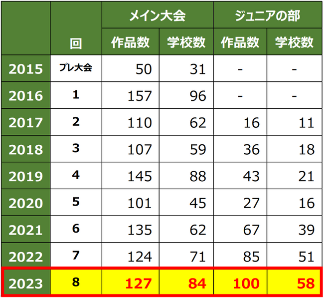 ■2023大会 ジュニアの部は応募数が100作品に到達し、最多応募数を更新