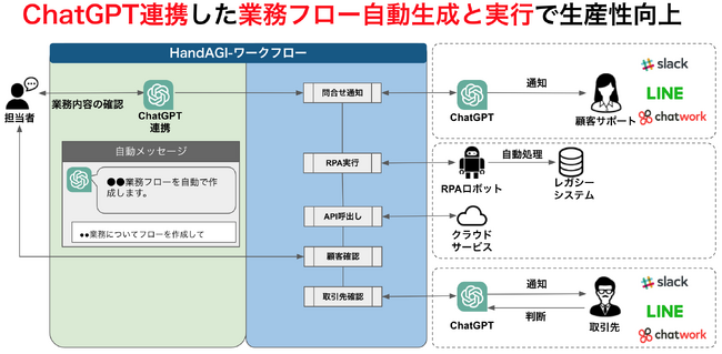 株式会社リフラックス(本社:東京都渋谷区/代表取締役 濱田憲一)は、2023年6月19日より、OpenAI社のChatGPTを活用した業務フロー自動生成により生産性を向上する新たなSaaS(Software as a Service)「HandAGI」を開発しました。