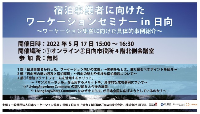 一般社団法人日本ワーケーション協会では、5月17日15:00より、ホテルなどの宿泊事業者に向けたワーケーションセミナーを実施します。