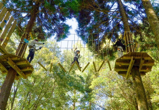 フォレストアドベンチャーは、森を森のまま自然を最大限活用しているフランス生まれの「自然共生型アウトドアパーク」です。「森で楽しく遊ぶことが森の課題を解決する」というコンセプトをもつフランスのアルタス社と業務提携を結び、2006年に富士山麓に日本初のフォレストアドベンチャー「フォレストアドベンチャー・フジ」をオープンしました。現在は全国40か所以上でその土地の森に合わせた個性豊かなパークを展開しています。(2024年10月現在 43か所)