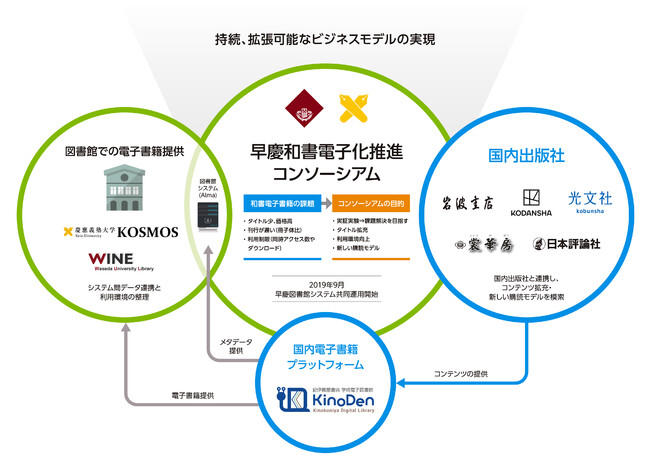 早慶コンソーシアムにとどまらず、国内の大学図書館向け電子書籍(和書)の拡充、利便性の向上、新たな購読モデル構築につなげることを目指しています。