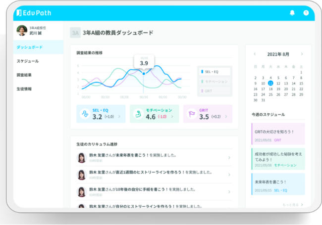 「Edv Path(エデュパス)」では、数値化した生徒の非認知能力を基に、その成長支援を行うための環境作りやカリキュラムを提供いたします。