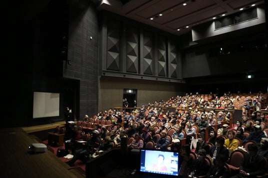 「美空ひばり記念館オンラインツアー」を、初の試みとして、地域に暮らす高齢者約200名が集まる劇場と地域の介護施設を複数繋ぐ形で開催しました。フェスタのオープニングイベントとして開催された「美空ひばり記念館オンラインツアー」の冒頭では、記念館でしか鑑賞できない特別映像を放映しました。その後も、懐かしい美空ひばりさんの代表曲を視聴したり、美空ひばりさんの思い出が詰まったリビングや愛車のキャデラックなどを、息子である加藤和也氏が案内するなど盛りだくさんでした。イベント最後の締めくくりは、約200名の高齢者の方々と介護施設の皆様による「川の流れのように」大合唱。さらに加藤和也氏へ、生中継・双方向ならではの直接の質疑応答タイムもあり、大盛況のうちに幕を閉じました。