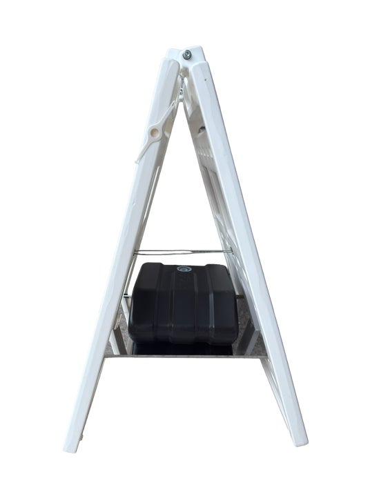 専用ウエイトベッドにサインウエイト(満水)を使用した状態では、最大風速15m/sまでの耐風試験をクリア(※) しており、屋外でも安定して使用できるA型看板として設計されています。
