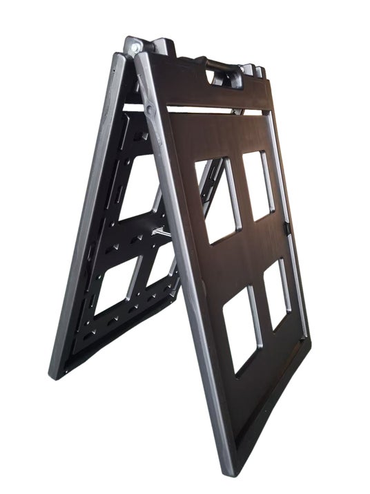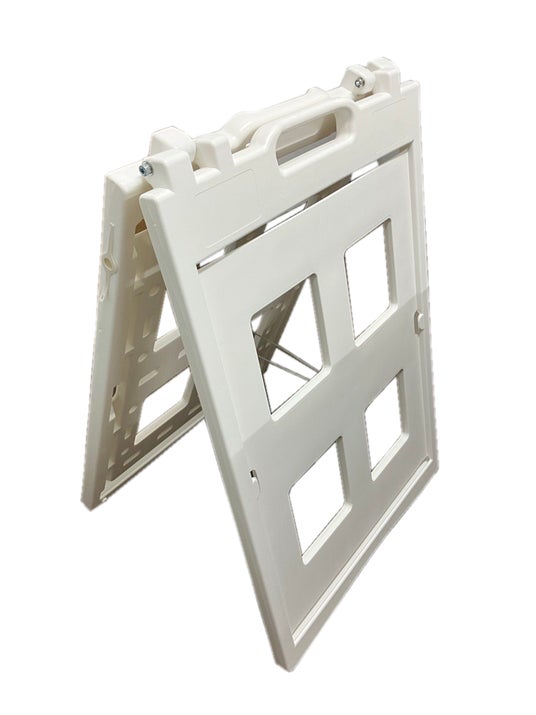 高密度ポリエチレン(HDPE)製の割れにくい素材を採用し、大型サイズながら設置しやすく、安定感と扱いやすさを兼ね備えたA型サインです。店舗前や駐車場、イベント会場など、屋外でしっかりと案内・告知を行いたいシーンにおすすめのスタンド看板です。
