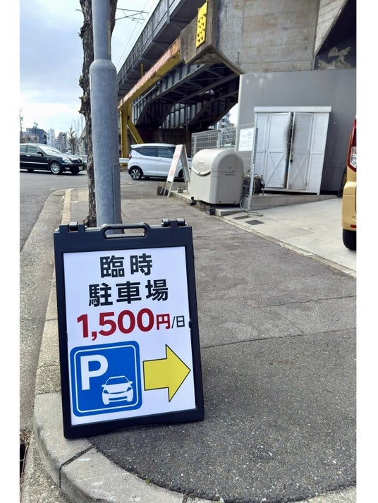 店舗前での案内表示や、駐車場での誘導・注意喚起などを行いたい場面に適したスタンド看板です。大型サイズで存在感があり、設置もシンプルなため、日々の案内サインとして無理なく活用できます。