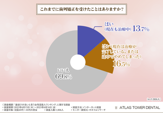 約3割が歯列矯正経験者!そのうち1割以上は現在も治療中