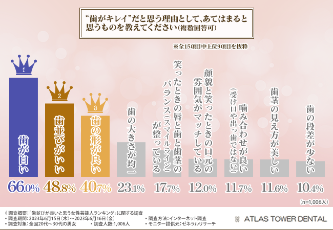 『歯が白い』『歯並びが良い』『歯の形が良い』が選んだ理由と多くの方が回答