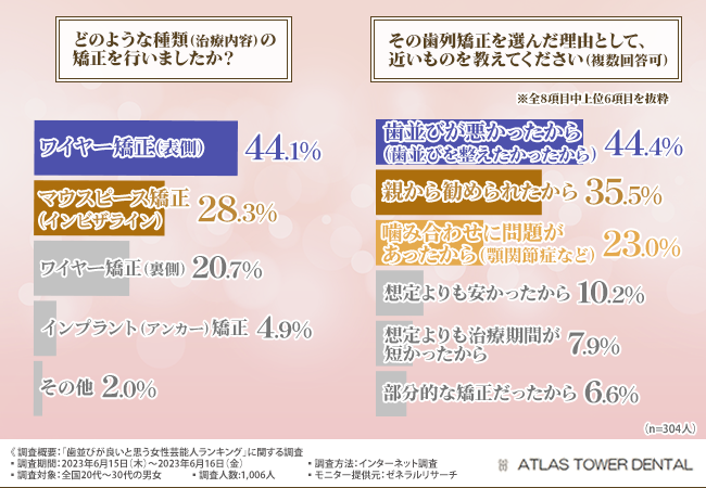 その中でも、『ワイヤー矯正』や『マウスピース矯正』を受けた方が多いことが判明しました。