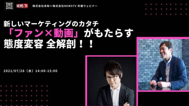 「Fun Marketing Cloud」を提供する未知株式会社(本社:大阪市北区、代表取締役:下方 彩純、以下未知)は、株式会社NewsTV(本社:東京都港区、代表取締役:杉浦健太)と共同で「新しいマーケティングのカタチ【ファン×動画】がもたらす態度変容 全解剖!!」のテーマでウェビナーを開催いたします。