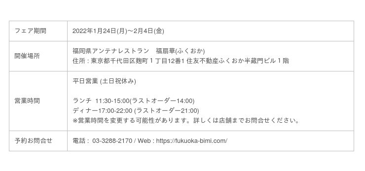 2022年1月22日(土)、東京都にある福岡県アンテナレストラン福扇華(ふくおか)にて筑豊エリアの魅力を発信するイベント『筑豊炭鉱遺産と銘菓の食宴』を開催。さらにイベントに続く2週間、筑豊フェアを開催します。