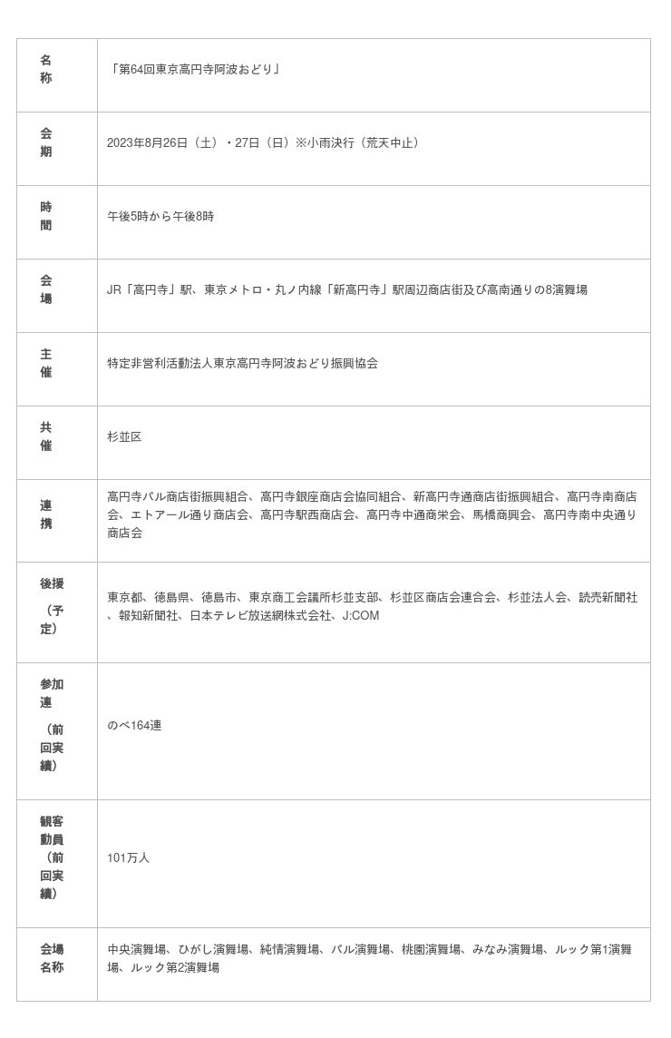 開催概要「第64回 東京高円寺阿波おどり」