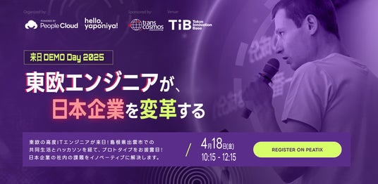 今回のDEMO Dayでは、People Cloudの人材紹介事業「hello, yaponiya(ハロー、ヤポーニヤ)」で来日した東欧ンジニアと、今回のハッカソンでコラボーレーションしているトランスコスモスから参加したエンジニアの混合チームによる技術デモやプレゼンテーションが行われ、日本企業の採用担当者や技術責任者との直接対話の場が設けられます。これにより、実際の技術力を確かめながら、具体的な採用やプロジェクト参画の可能性を探ることができます。