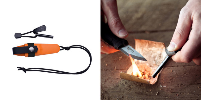 ファイヤースターターを使えば、ライターやマッチがなくても火おこしが可能です。コンパクトで携帯性に優れたナイフとファイヤースターターがセットになったエルドリス ネックナイフキットなら、火口のためのフェザースティック作りから、着火までこれひとつで対応できます。