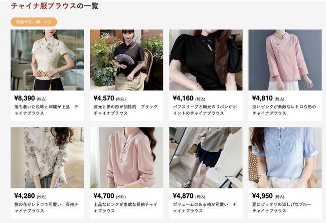 Chiniiは中華服専門店ならではの豊富な品揃えからチャイナブラウスが探せます。