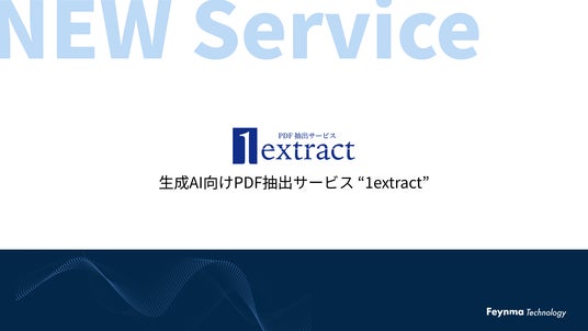 株式会社Feynma Technology(ファイマテクノロジー|名古屋市東区、代表取締役 土屋太助)は、生成AI向けPDF抽出サービス 1extract(ワンエクストラクト)の提供を開始したことをお知らせいたします。