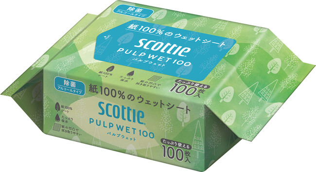 日本製紙グループの日本製紙クレシア株式会社〔住所:東京都千代田区神田駿河台4-6、代表取締役社長:福島一守〕は、衛生志向の高まりから日常生活で幅広く使われるようになったウェットティシューで、この度、循環型資源である「木」から生まれたサステナブルな紙100%のウェットシートを採用した『スコッティ ウェットティシュー 除菌アルコール PULP WET (パルプウェット)100』を、2023年4月1日(土)より新発売いたします。