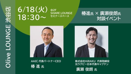 第一弾となる6月18日(火)は、『超加速経済アフリカ』の著者である椿進氏と、元ラグビー日本代表キャプテン廣瀬俊朗氏の対談イベントを無料開催いたします。