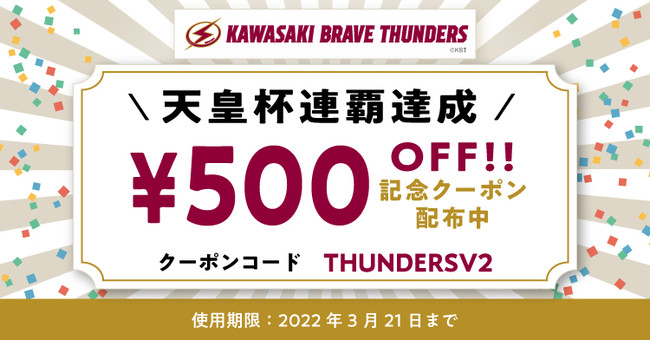 ■川崎ブレイブサンダース天皇杯連覇記念500円OFFクーポンを利用者全員に配布