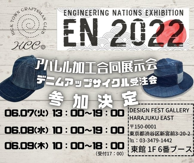 日本国内で多数のブランドの帽子や雑貨のOEMを行う株式会社島田(本社:香川県観音寺市、代表取締役:寳田和久)は、いらなくなった洋服、小物、ショッパーなどのアパレル商品を、この世に一つしかない帽子としてアップサイクルし販売するサステナブルブランド「HicktownCraftmanClub(ヒックタウンクラフトマンクラブ)」(以下HCC)のデニムアップサイクル受注会を、2022年6月7日(火)~9日(木)まで原宿のデザインフェスタギャラリーにて開催します。