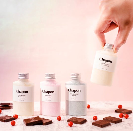 日々の忙しさに、疲れを感じていませんか?Chaponは「今日の疲れを癒やしたい」そんなバスタイムに寄り添う、植物エッセンスたっぷりの天然アロマ入浴剤として誕生。「喧騒忘れる、しあわせタイム。」というブランドコンセプトのもと、天然アロマ100%の贅沢な香りで忙しい日常を忘れる、特別なくつろぎの時間を提供しています。累計販売本数は25万本を突破。三越伊勢丹やBIRTHDAY BARなどの全国のギフト専門店で取扱開始。バスソルト初グッドデザイン賞受賞、Amazon・楽天 部門ランキング1位獲得。