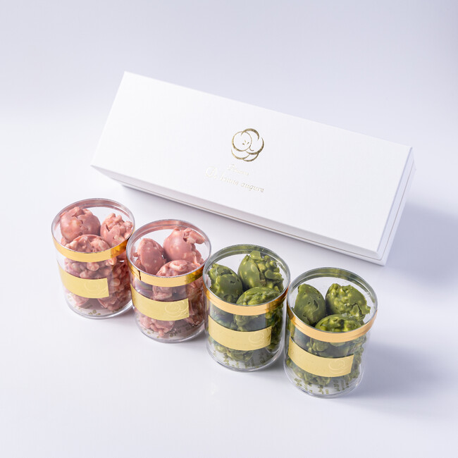 (チョコおこしイチゴ1個、抹茶1個、福寿の種3個)