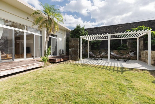 「離島に暮らすように泊まる愛犬泊可の一棟貸しヴィラ」宮古空港から車で約5分に位置し、スーパー・飲食店までは約900m、東洋一の美しさを誇る、与那覇前浜ビーチまでは車で10分とアクセス抜群のプール付き愛犬可のヴィラ。約500平方メートル のドッグランがあり愛犬と伸び伸び遊ぶことができます。