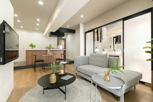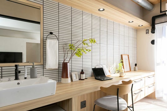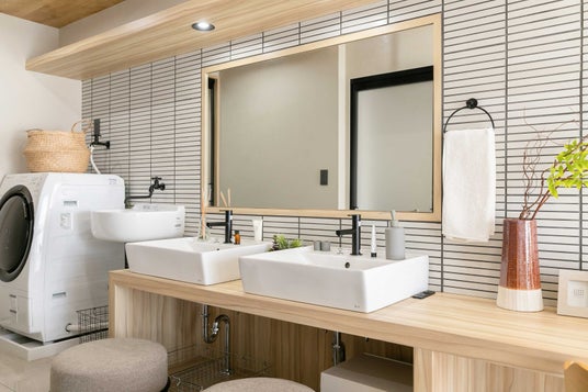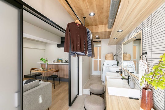 洗濯は「洗う」「干す」「畳む」「収納する」と過程が多い家事です。そのため、ゆとりを持って作業するにはある程度のスペースが必要となりますが、多くの賃貸物件では限られたスペースで家事を行っています。そこで賃貸物件でも広々したランドリースペースで楽しく洗濯を行っていただくために、開放的なランドリーROOMを制作。毎日の洗濯時間が従来よりも楽しくスムーズに過ごすことができる部屋となっています。