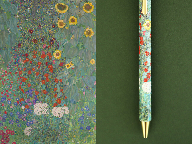 キャンバスいっぱいに鮮やかな花々が咲き乱れ、見ているだけで癒されるような穏やかな風景画です。緻密に描写された原画のタッチを再現するために細かい凹凸を多数入れており、ペンを触ることでその繊細な筆致を感じることができます。ペン全体が華やかな花で覆われていて、まるで花束のようにも見えるため、大切な方への贈り物としてもおすすめです。