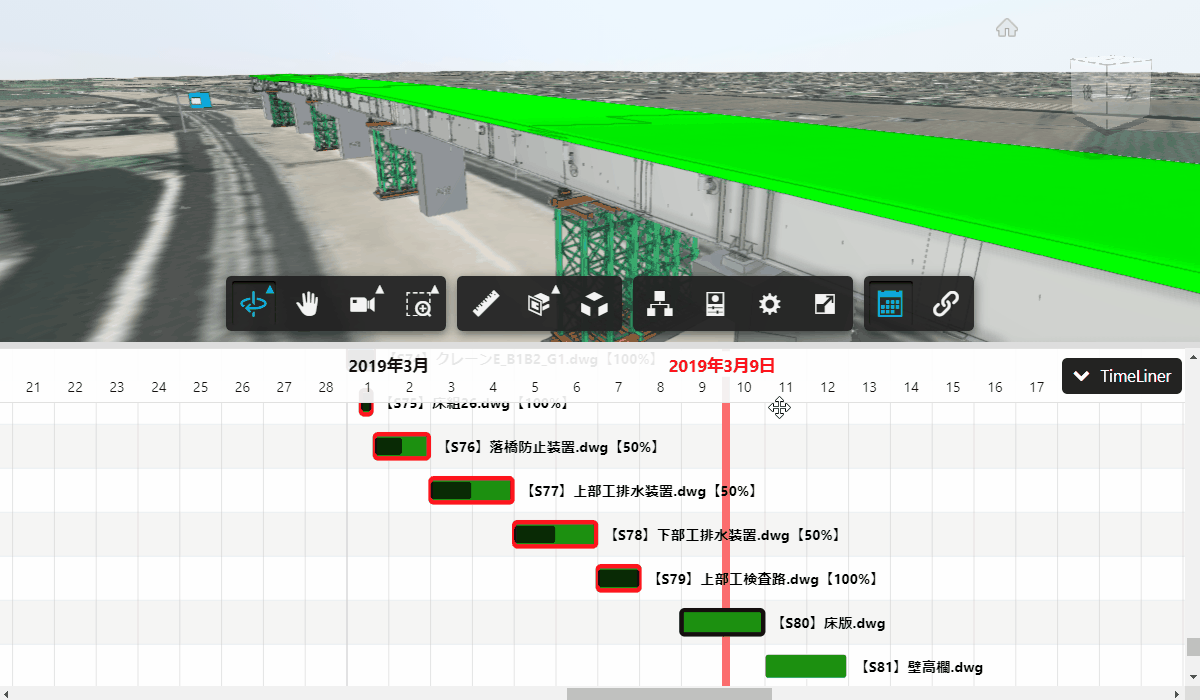 BIM/CIMモデルと工程表を連携し、クラウド上で4D施工シミュレーションを共有・編集できる4D工程管理クラウドです。Autodesk Navisworks のタイムライナー設定から自動生成します。 iPad、Apple Penceil による操作にも対応しており、現場でのリアルタイムな情報共有にも活用されています。