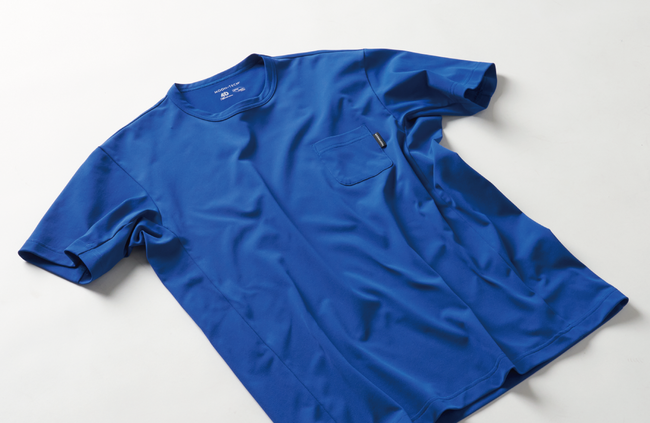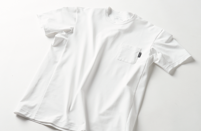縫製で使用する「4D動体パターン」は、宇宙飛行士の船内服にも採用された、「丸和繊維工業/Membrana(メンブラーナ)」の持つ特殊縫製技術。1枚の生地が袖先から裾端まで貫通した特殊な裁断パターンで、肩や腕、身体全体の大きな動きにも追随し、ずりあがりや突っ張りのないストレスフリーな着心地を実現します。