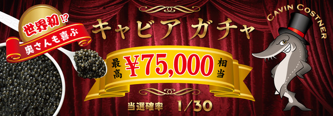 必ずキャビアが当たるガチャは、最高75,000円相当の500g缶のキャビアが30分の1の確率で当たります。