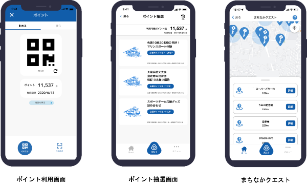 「ドリームポイント」は、2016年3月から久里浜商店会協同組合が実施しており、加盟店での買い物や指定する事業(イベント)への参加など、普段の暮らしを通じてポイントを獲得することができるほか、1ポイント=1円として、加盟店での使用が可能です。この度リリースした「ドリームポイントアプリ」では、二次元コードを読み取ることでポイントを貯める・利用することができるようになりました。さらに、ポイント交換、お知らせ配信やアンケートなど、アプリならではの機能が搭載され、より便利にお使いいただくことができます。