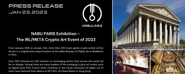 2023年1月にパリのマドレーヌ寺院にてクリエーター、コレクター、起業家向けのアート・クリプト展示会「NABU Lines Expo in Paris」をメタバースと現実世界で同時開催。